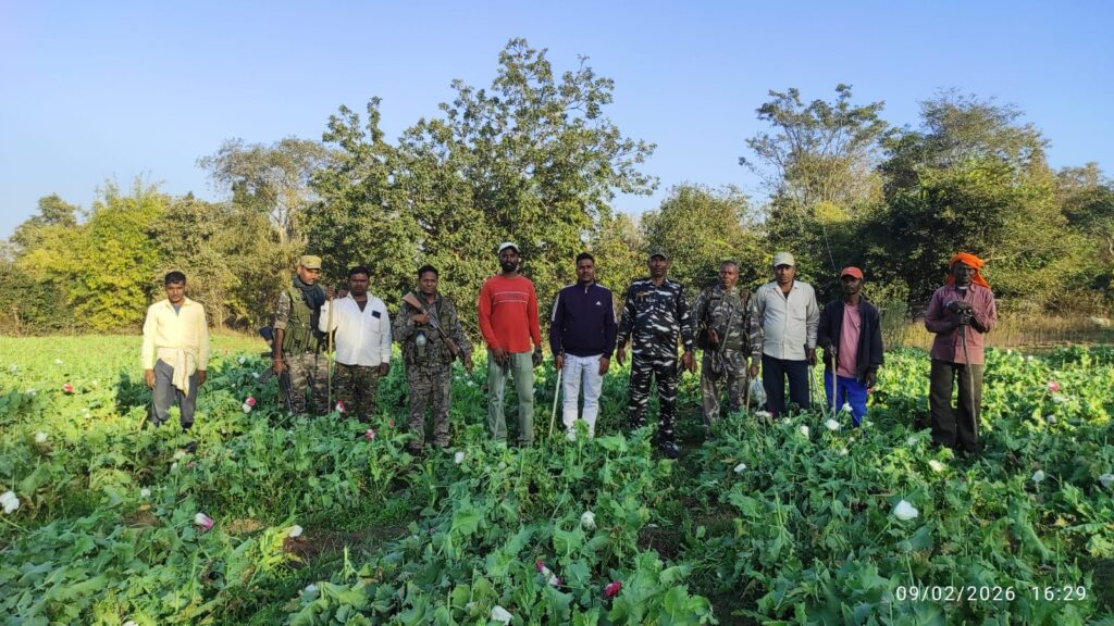 आज दिनांक 09/02/2026 को पांकी थाना क्षेत्र अंतर्गत ग्राम पुंडरू एवं आबून के जंगली क्षेत्र में वन भूमि में करीब 4 एकड़ एवं गैर मजरूआ भूमि में करीब 1 एकड़=कुल करीब 5 एकड़ में अवैध रूप से लगी अफीम/पोस्ता की खेती को विनष्ट किया गया।उक्त विनष्टीकरण अभियान में पांकी थाना के पदाधिकारी एवं ताल पिकेट के पदाधिकारी एवं पांकी थाना/ताल पिकेट के जवान तथा वन विभाग की टीम संयुक्त रूप से शामिल थी।इस खेती में संलिप्त लोगों को नाम पता सत्यापन कर प्राथमिकी दर्ज कर कानूनी कारवाई की जा रही है।