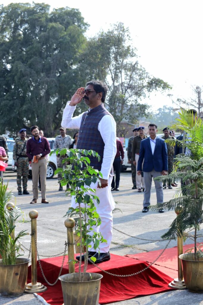 मुख्यमंत्री श्री हेमन्त सोरेन के धनबाद आगमन पर एयरपोर्ट परिसर में जिला प्रशासन की ओर से दिया गया गार्ड ऑफ ऑनर, जिला प्रशासन के पदाधिकारियों ने किया स्वागत।